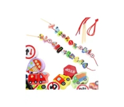 Klocki drewniane do nawlekania pojazdy znaki ...